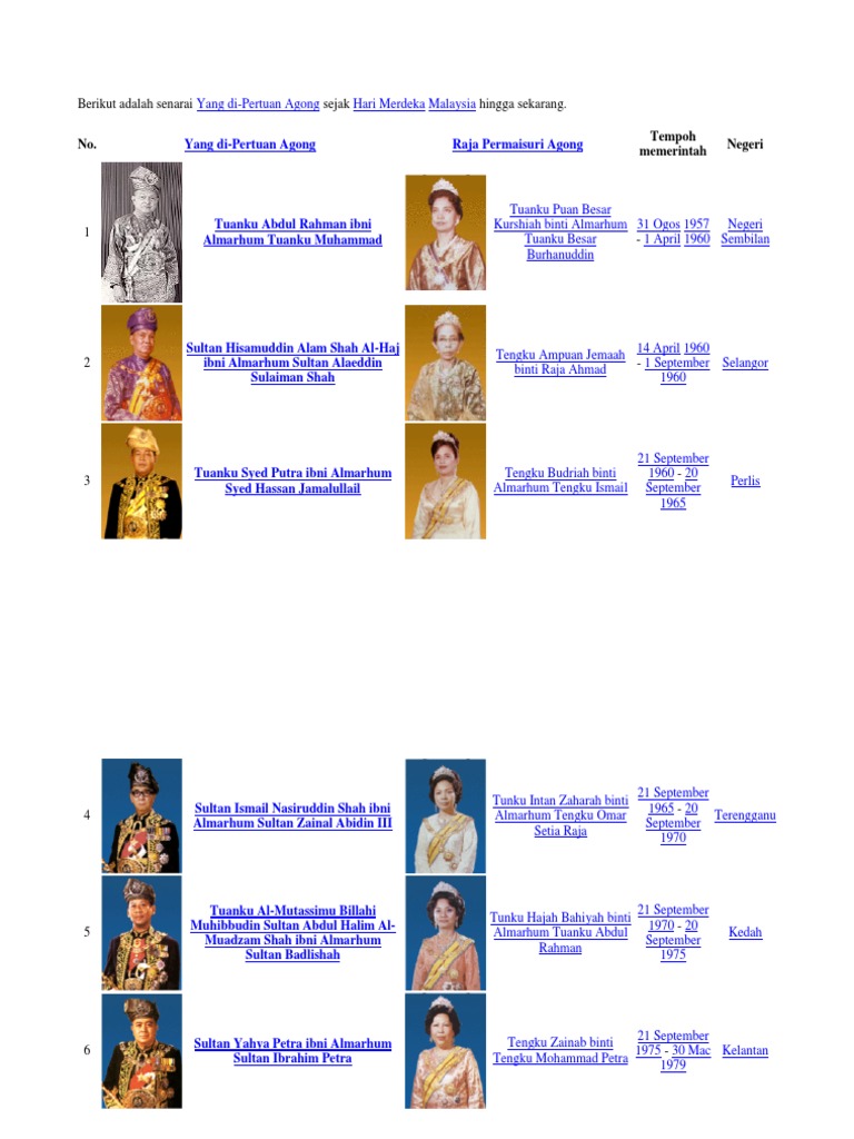 Senarai Yang Dipertuan Agong Malaysia / Yang Di Pertuan Agong Malaysia Kg Pauh Temangan Kelantan / Senarai raja pemaisuri agong malaysia pertama hingga kini.. Create html5 flipbook from pdf to view on iphone, ipad and android devices. Biasiswa yang dipertuan agong (ydpa). Sistem perlantikan spb yang dipertuan agong malaysia. · senarai kerajaan persekutuan, senarai kerajaan negeri dan senarai bersama. Nama agong malaysia (page 1) senarai yang dipertuan agong malaysia nama, gelaran dan gambar rasmi these pictures of this page are about:nama agong malaysia