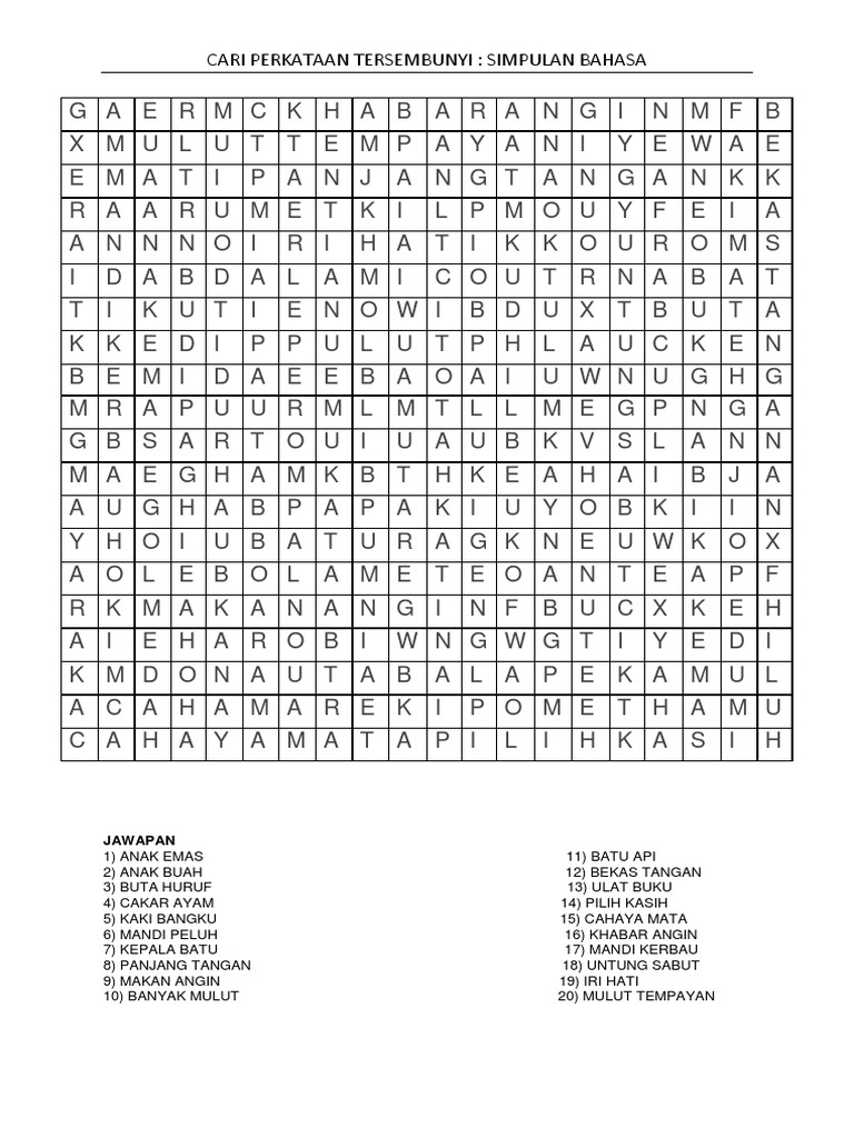 Perkataan Tersembunyi Bahasa Melayu / Pertandingan Mencari Perkataan Tersembunyi Contoh Tahun 2017 / Kalau saudara tahu bahwa orang yang menasihati saudara peduli kepada saudara, tidak berbicara karena sedang kesal, dan tidak mempunyai maksud yang tersembunyi, nasihat itu.. Tukar perkataan dalam buku, artikel, atau dalam jawatan media sosial secara automatik. Permainan mencari perkataan tersembunyi dalam bahasa melayu kini permainan yang mencabar kemahiran anda dalam mencari perkataan dalam bahasa melayu yang disembunyikan di dalam satu puzzle! Jikalau ya, maka awak berada di kawasan yang betul! Buku teka silang kata kanak kanak. Tahun 4,5 dan 6 age: