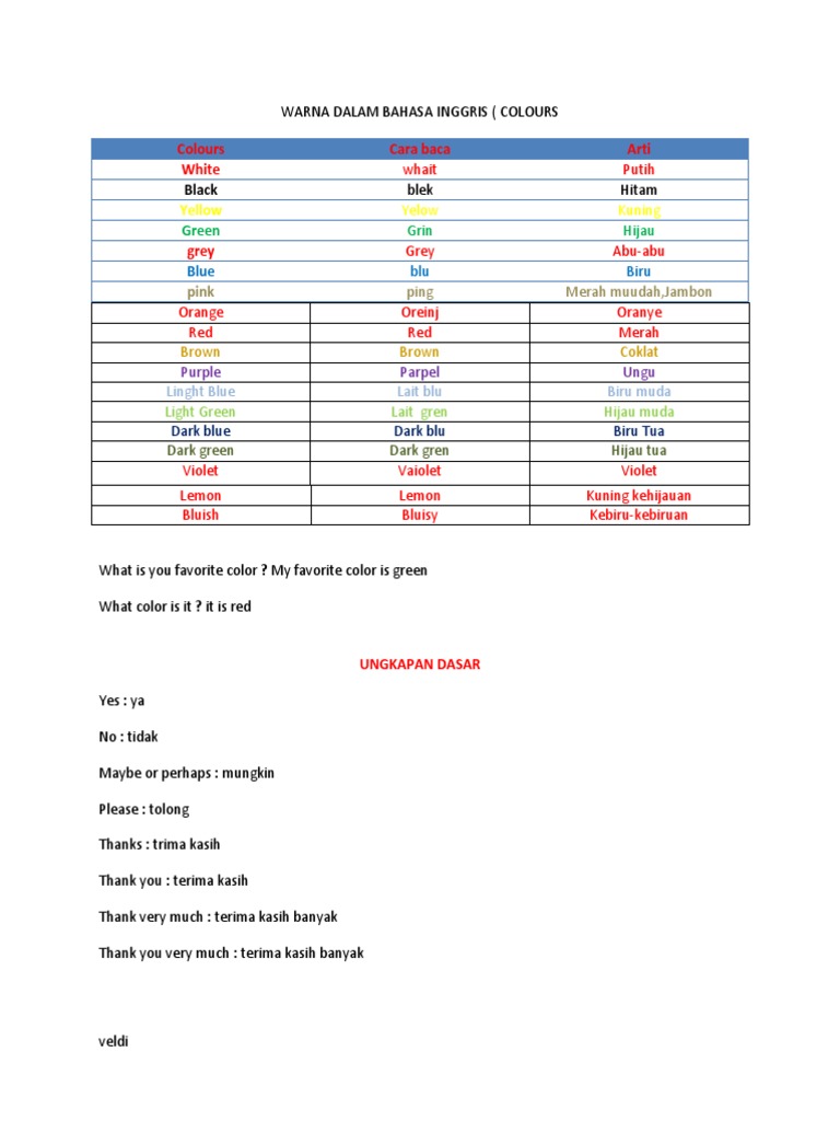 Materi 'Colors' (Warna) dengan Lagu dan Soal Latihannya ... from 3.bp.blogspot.com Maybe you would like to learn more about one of these? Penyakit kuning dalam bahasa inggris. Check spelling or type a new query. We did not find results for: